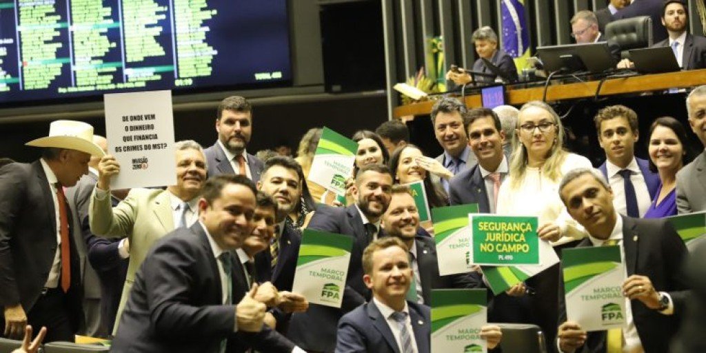LUTA – O marco temporal estabelece que os povos indígenas só poderão reivindicar a posse de áreas que ocupavam de forma permanente na data da promulgação da Constituição, em 5 de outubro de 1988. Na prática, se as comunidades não comprovarem que estavam nas terras nesta data, poderão ser expulsas.