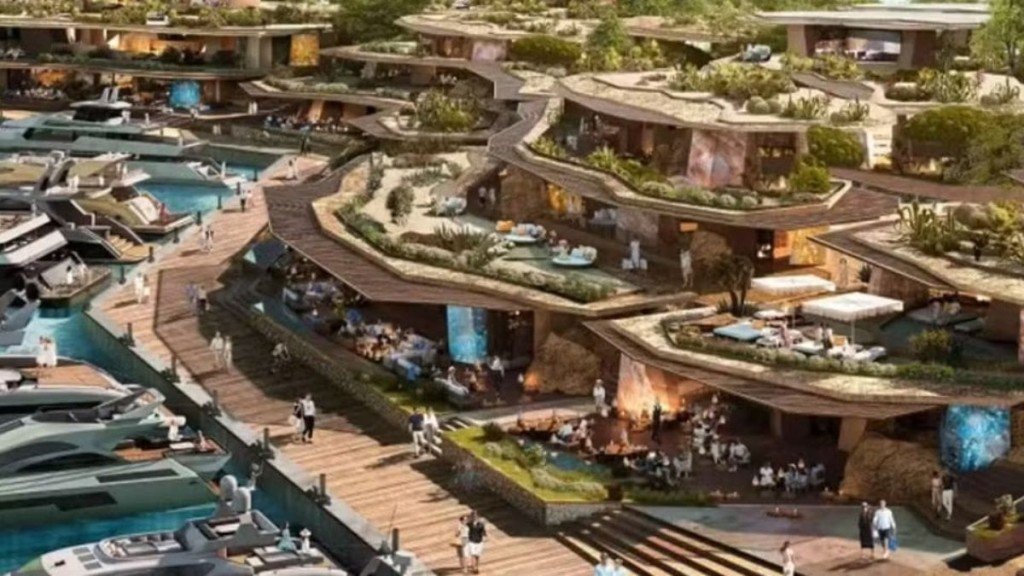 O projeto terá também 400 quartos de luxo, uma marina com 86 vagas para embarcações e 75 boias especializadas em superiates, um beach club, um campo de golfe, um centro gastronômico com 38 restaurantes e lounges e um espaço com mais de 51 lojas.