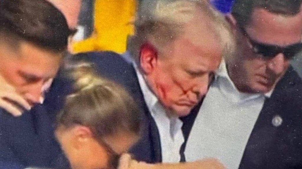 Trump estava mostrando aos apoiadores um gráfico com números sobre travessias de fronteira quando tiros soaram em duas rajadas. Ele colocou a mão na orelha e se abaixou. Na sequência, foi escoltado por agentes do Serviço Secreto com o rosto ensanguentado e ergueu o punho enquanto deixava o palco na Pensilvânia, Estado-chave nas eleições americanas. O porta-voz e o filho mais velho do líder republicano, Donald Trump Jr., informaram que ele está bem.