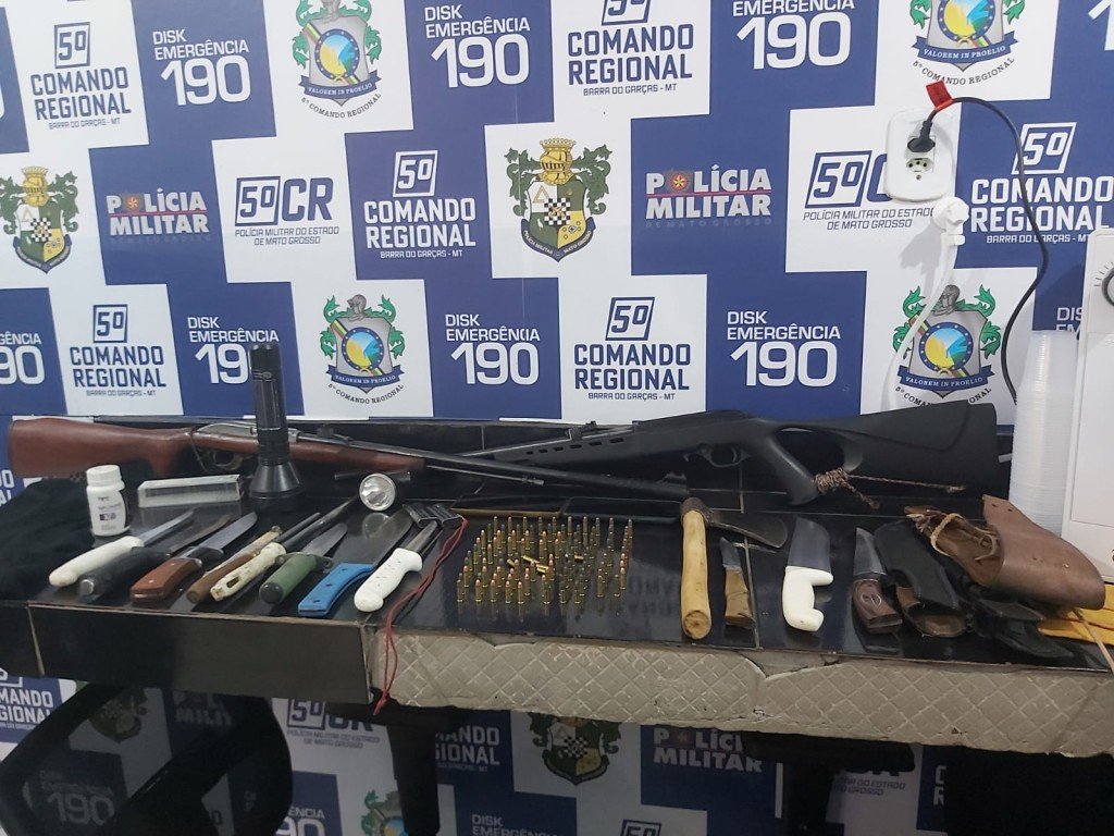Questionados sobre o armamento, os suspeitos disseram que não tinham documentação de porte. Diante do flagrante, foram presos e encaminhados para a delegacia de Barra do Garças.