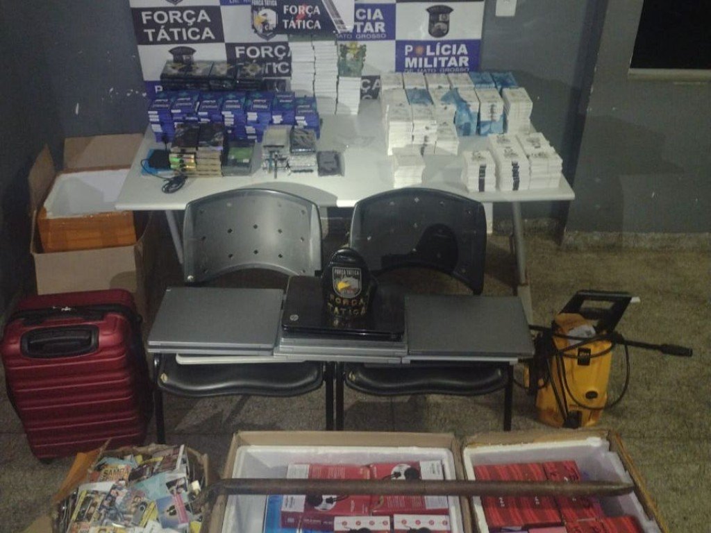 A Polícia Militar prendeu cinco homens e uma mulher por associação criminosa, furto e receptação, na noite desta segunda-feira (04.03), em Rondonópolis. Eles estavam com 10 notebooks, quatro celulares, entre outros produtos eletrônicos, que haviam sido furtados de uma transportadora.
