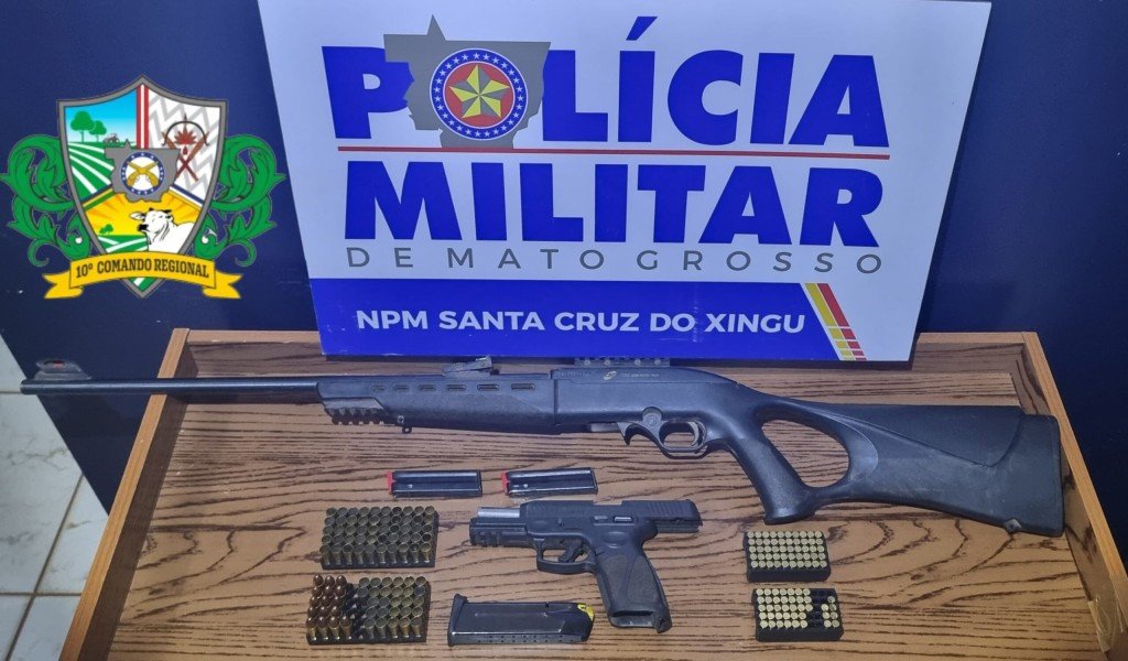 A Polícia Militar prendeu um homem de 42 anos por violência doméstica e ameaça, na noite deste domingo (11.08), na zona rural de Santa Cruz do Xingu. Com ele, a PM apreendeu duas armas de fogo e munições para os objetos.