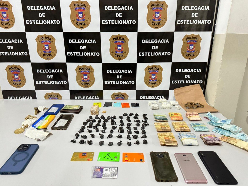 Diversas porções de entorpecentes e mais de R$ 7,6 mil em dinheiro foram apreendidos pela Polícia Civil, na tarde de quarta-feira (06.03), durante mandado de busca e apreensão em uma casa, no bairro Jardim Umuarama II, cumprido pelos policiais da Delegacia Especializada de Estelionato e Outras Fraudes (DEEF) de Cuiabá.