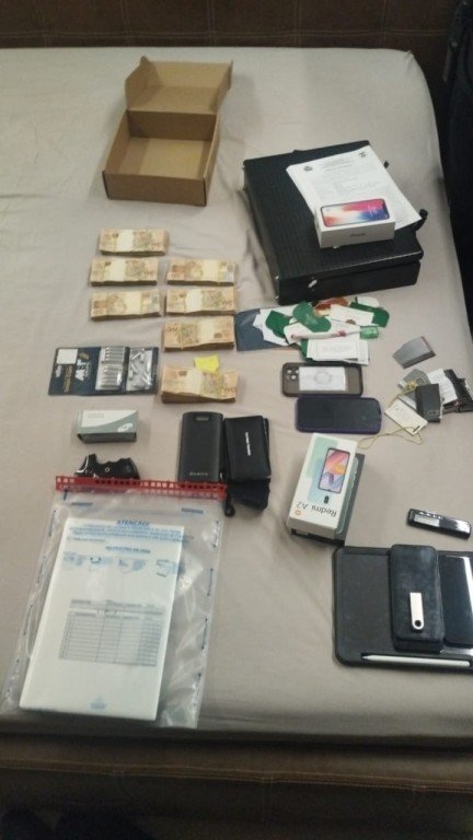 Foram apreendidos R$ 34 mil, diversas barras que aparentam serem de ouro e dispositivos eletrônicos, como celulares, computadores e notebooks. Os equipamentos passarão agora pela análise de dados da equipe responsável pela investigação. As barras serão submetidas à perícia técnica.