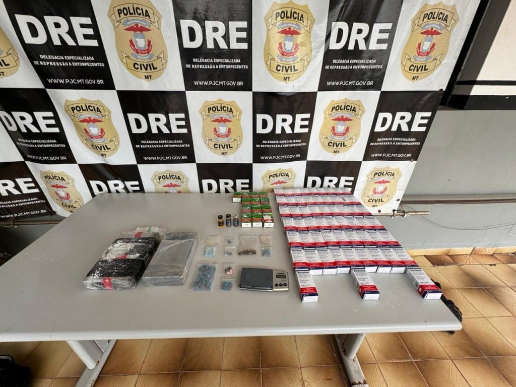 Também foram apreendidas no local, embalagens de zip log em que estavam armazenadas porções de maconha, pedras de MDMA. Em outro quarto da casa, foram encontradas duas peças de cocaína, balança de precisão, material utilizado para embalo da droga, além de três frascos e 58 caixas de esteróides e anabolizantes.