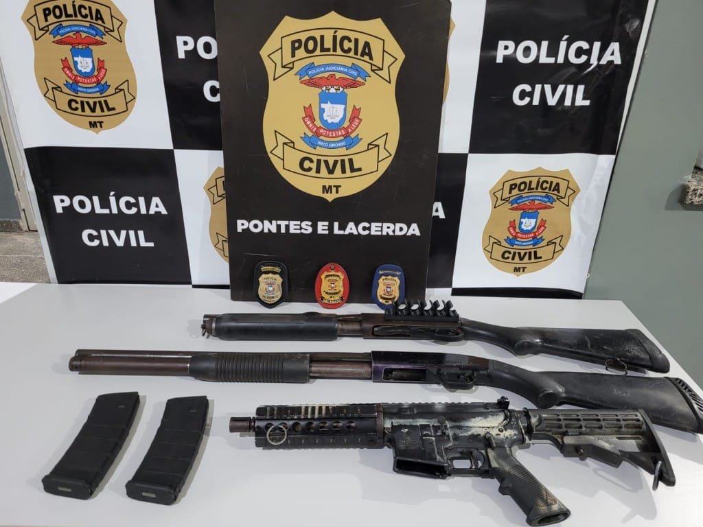 Após a retirada do material, foi possível constatar que se tratavam das três armas de fogo, entre elas duas espingardas e o fuzil que o investigado portava nas fotos. O armamento foi apreendido e apresentado na Delegacia de Vila Bela da Santíssima Trindade para as providências cabíveis.