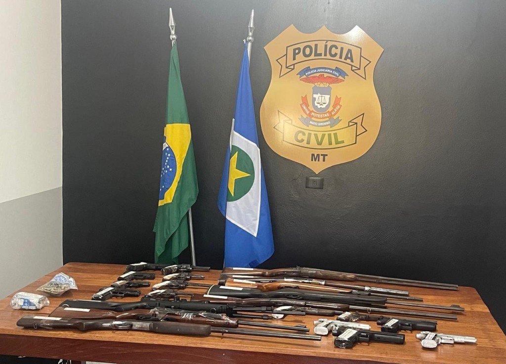 Entre as armas apreendidas estão revólveres, pistolas e espingardas. A retirada das armas de circulação, através do trabalho de investigação e repressão aos delitos, evita potenciais crimes de feminicídio e outras infrações graves.