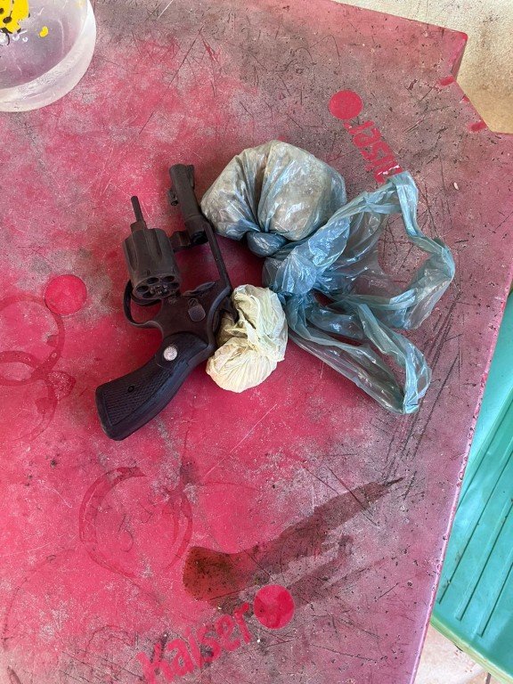 Durante a vigilância, os policiais civis avistaram o investigado nas proximidades da casa, segurando um embrulho suspeito. Ao abordá-lo, encontraram porções de cloridrato de cocaína no pacote. Na residência, também foi localizado um revólver calibre 38 com a numeração raspada.