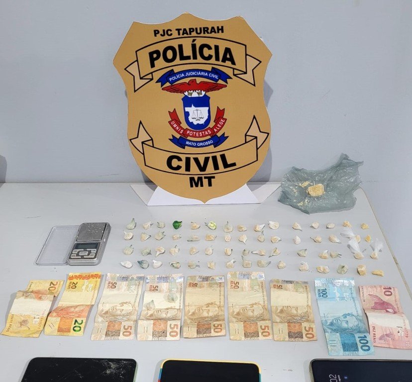 Policiais da Delegacia de Tapurah apreenderam na quarta-feira (28.08), 62 porções pequenas e uma porção grande de pasta base de cocaína com um suspeito que foi flagrado separando a droga para a venda, em uma residência da cidade. Na casa estavam seis crianças.