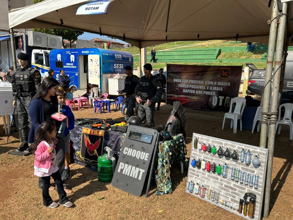Além dos atendimentos, policiais militares do Batalhão Ambiental, Força Tática e Bope montaram estandes para mostrar à população um pouco dos equipamentos, armamentos e contar sobre o trabalho de policiamento ostensivo.