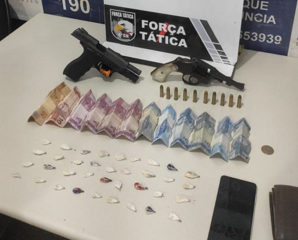 Aos policiais, o suspeito se apresentou como integrante de uma facção criminosa. Ele recebeu voz de prisão e foi conduzido para a delegacia de Cáceres para registro da ocorrência.