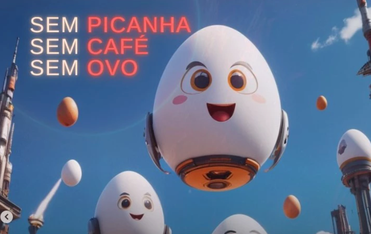 – Sem picanha, sem café, sem ovo – diz a imagem publicada, com ovos voando, “nas alturas”.