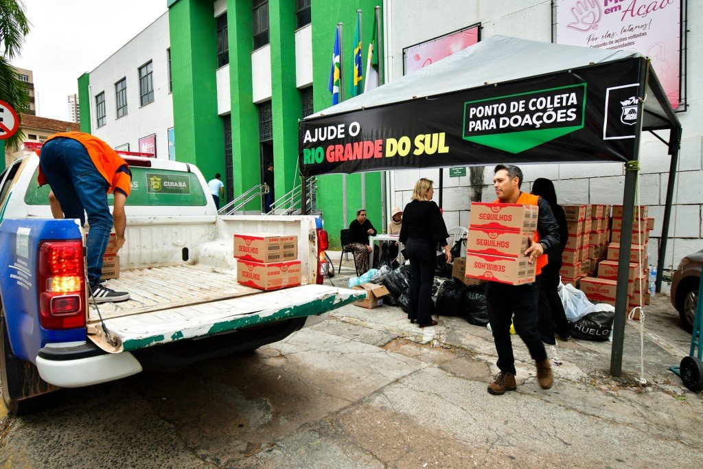 Movida pela solidariedade, a Prefeitura de Cuiabá arrecadou cerca de seis toneladas em donativos que serão enviados para as famílias vítimas dos recentes desastres climáticos do Rio Grande do Sul. A ação iniciada nesta segunda-feira (13), está sendo coordenada pela Secretaria Municipal da Mulher, que também está sendo ponto oficial de coleta do Poder Executivo Municipal, localizada na Avenida Presidente Getúlio Vargas, nº 490, na região central de Cuiabá, funciona de segunda a sexta-feira, das 08h às 17h, sem intervalo para o almoço.