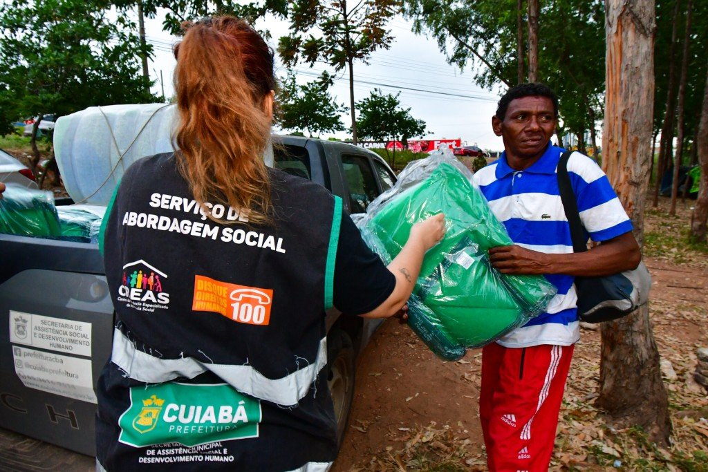 A Prefeitura de Cuiabá, via Secretaria Municipal de Assistência Social, Direitos Humanos e da Pessoa com Deficiência, entregou mais de 200 cobertores, nesta terça-feira (14), nos principais pontos de aglomeração da população em situação de rua da capital.