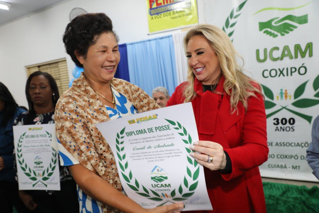 A primeira-dama Márcia Pinheiro destacou o protagonismo feminino durante a diplomação dos presidentes de bairros de Cuiabá, na última sexta-feira (12), em cerimônia realizada na União Coxipoense de Associações de Moradores (UCAM).