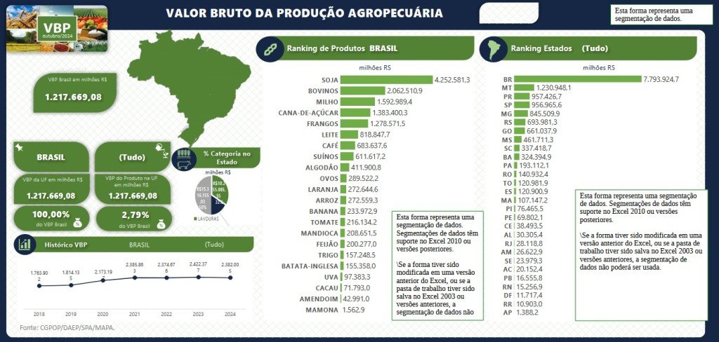 O VBP, divulgado mensalmente, é um indicador essencial para avaliar o desempenho do setor agropecuário e projetar tendências econômicas no campo. Com esses números, o Brasil reforça seu papel de liderança na produção global de alimentos, destacando-se não apenas pela quantidade, mas também pela diversificação e eficiência produtiva.
