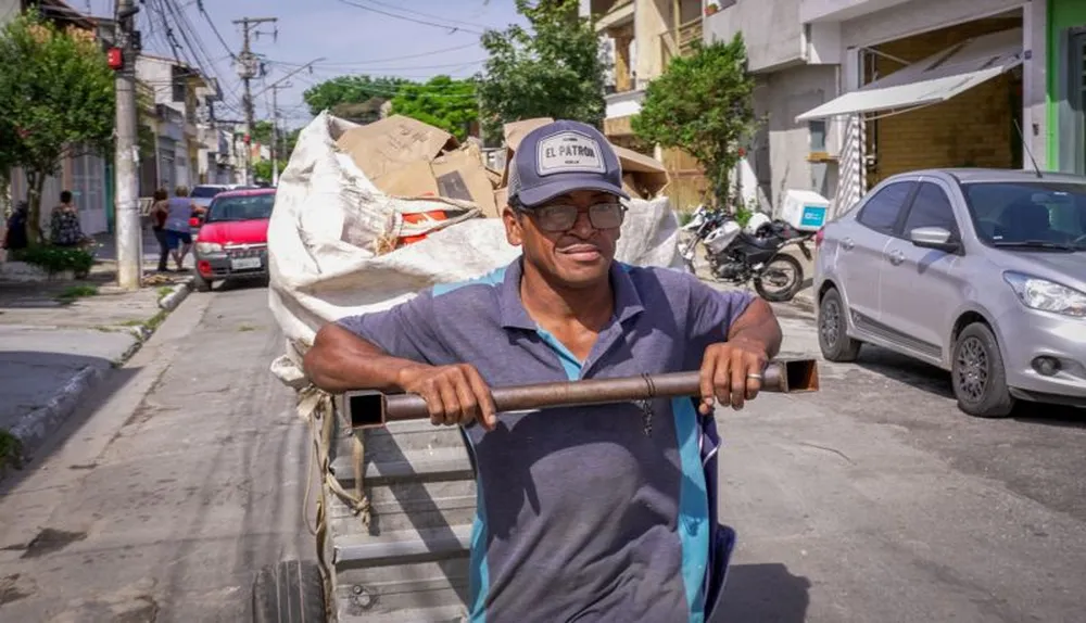 O catador conta que chegou a carregar 300 kg de material numa só viagem durante a pandemia, mas hoje entrega 50 kg quando tem sorte.