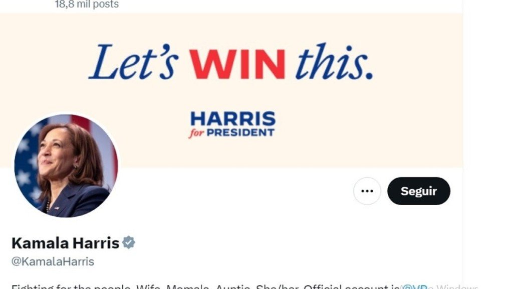Já nas redes de Kamala Harris , há uma imagem com o slogan dizendo “Vamos vencer isso”, acompanhado do logotipo que também destaca Harri logo em baixo.