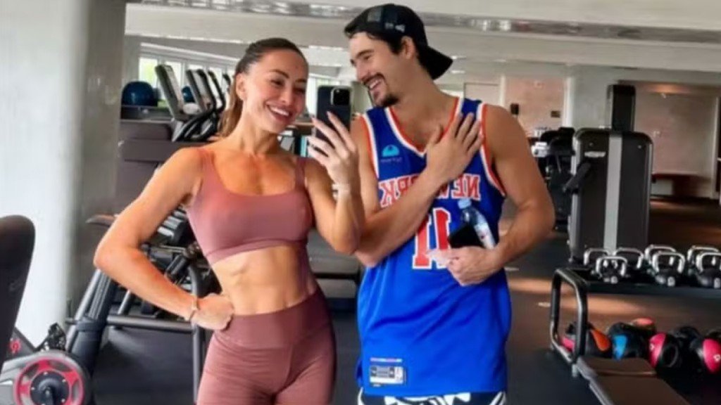No registro, o casal aparece sorridente e esbanjando boa forma. “Nicolas me colocou pra suar”, escreveu ela na legenda, com emojis de carinha apaixonada e um coração. Confira: