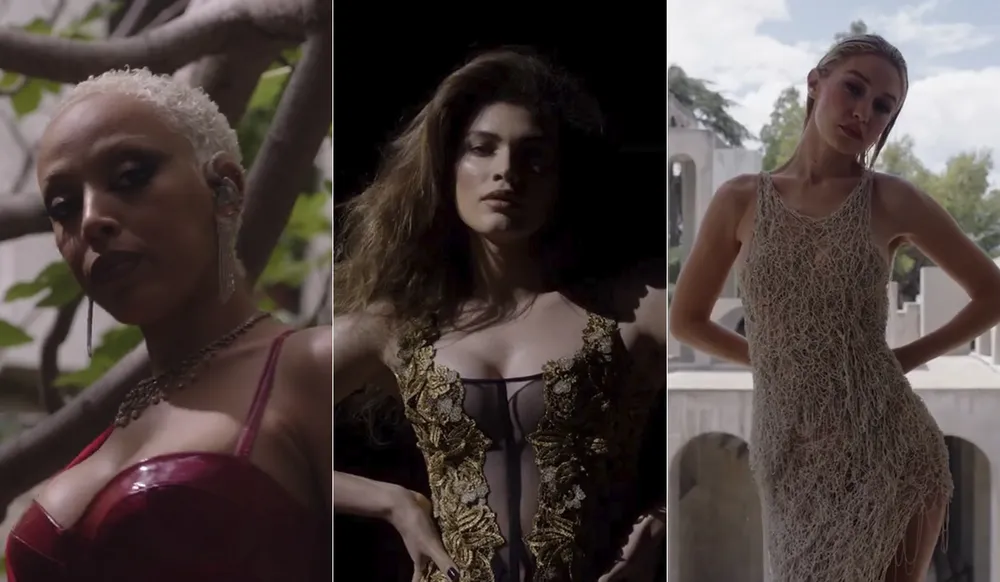 Diretamente de uma locação arquitetônica em Barcelona, na Espanha, Gigi Hadid se apresenta como a narradora do “The Tour”. O desfile-documentário marca o retorno dos icônicos (e polêmicos) shows da Victoria’s Secret e foi lançado na noite desta segunda-feira (25) no Prime Video.