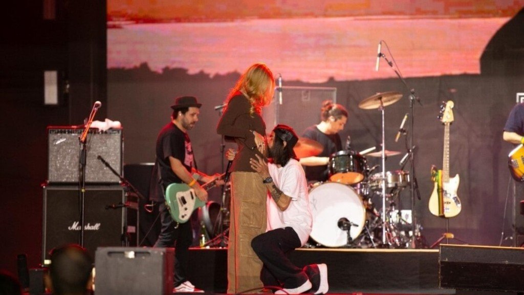 O domingo (28) foi marcado por um momento especial para Armandinho, um dos maiores nomes do reggae nacional. Durante sua apresentação no Na Praia Festival , em Brasília, o cantor e compositor descobriu, ao vivo, que será pai de uma menina. A revelação aconteceu no palco, com uma chuva de papel picado rosa ao som de “Amor vem cá”, enquanto sua esposa, Carla, natural da capital, o acompanhava.