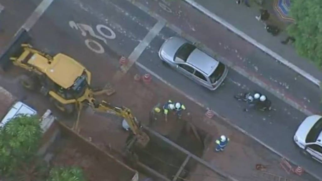 Segundo a CET, um vazamento causou o solapamento do solo. A interdição deve durar o dia todo para que os trabalhos sejam realizados. Para o trânsito de veículos, apenas uma faixa está liberada.