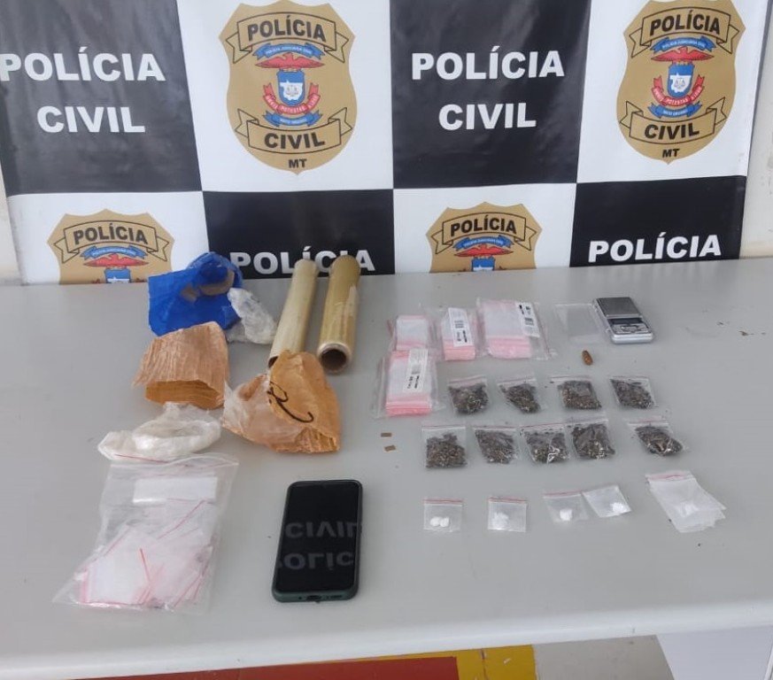 Diante dos fatos, todo material ilícito foi apreendido e o suspeito conduzido à Central de Flagrantes de Primavera do Leste, onde após ser interrogado foi autuado em flagrante pelo crime de tráfico de drogas.