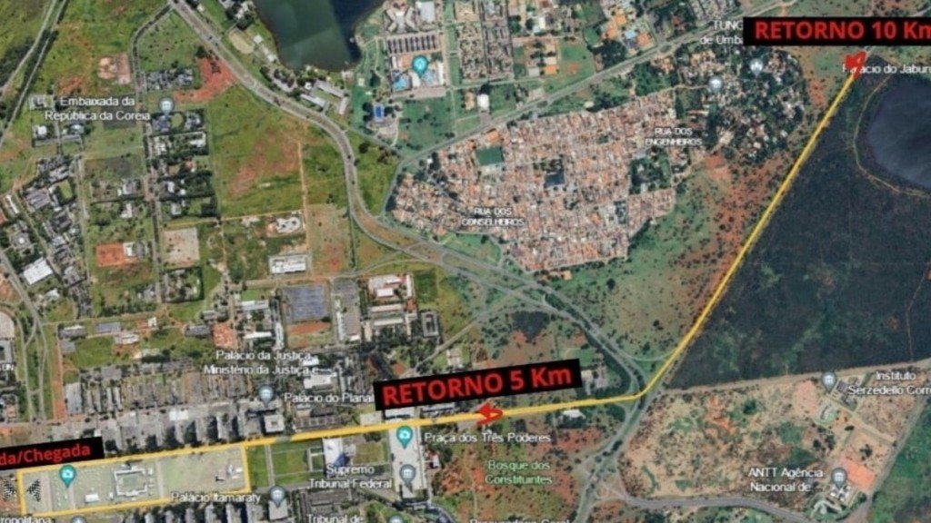 No sábado (27), a partir das 17h, as equipes do Detran farão o fechamento da via de ligação S1/N1, em frente ao Museu da República, para a montagem da estrutura física do evento. No domingo, durante a largada, às 8h, os agentes fecharão totalmente a via S1. Depois que os atletas acessarem a Avenida José Sarney, na altura do Ministério da Saúde, duas faixas da S1 serão liberadas para o tráfego de veículos. Na altura do Supremo Tribunal Federal (STF), o fluxo será desviado para a via S2.