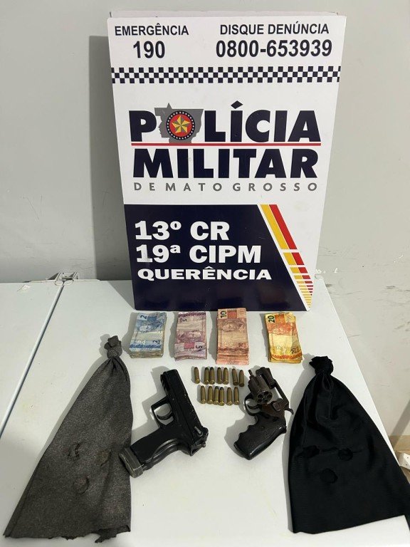 Imediatamente, os policiais se deslocaram até a residência do integrante da quadrilha, que foi preso em flagrante. Na casa, dentro de um freezer instalado na área, os militares encontraram um revólver calibre .38, um simulacro de pistola, 13 munições e R$ 550 em espécie.
