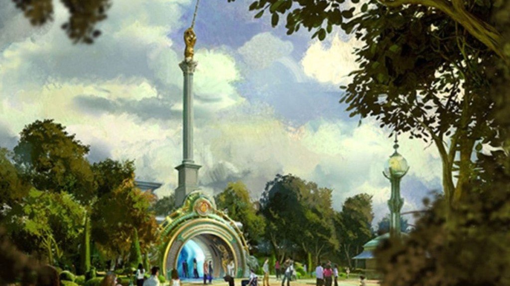 Além do portal ornamentado do novo mundo, os visitantes viajarão primeiro de um parque Trouxa em Paris para o espetáculo da Place Cachée de 1920, um distrito comercial escondido e movimentado, repleto de edifícios Haussmannianos, lojas, cafés nas calçadas e cúpulas parisienses.