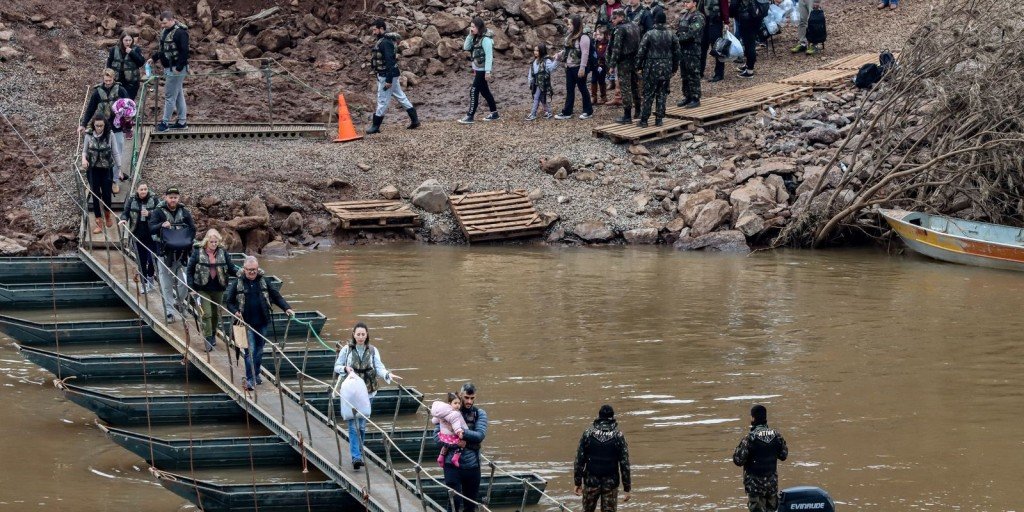 O Exército vai refazer as passarelas flutuantes para pedestres que foram instaladas em rios do Vale do Taquari, no Rio Grande do Sul. O estado enfrenta a maior tragédia climática de sua história, atingido por chuvas e enchentes desde o fim do mês de abril.![]()