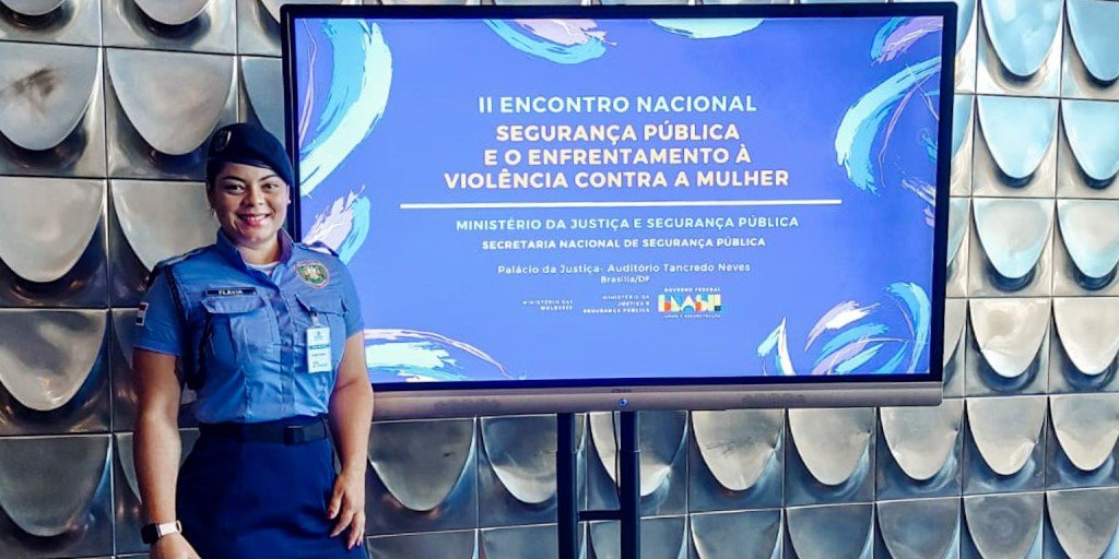 A Guarda Municipal, Flávia Nilma da Cunha, que é membro da Coordenadoria Patrulha Maria da Penha, da Guarda Municipal de Várzea Grande, está participando e representando o Município.